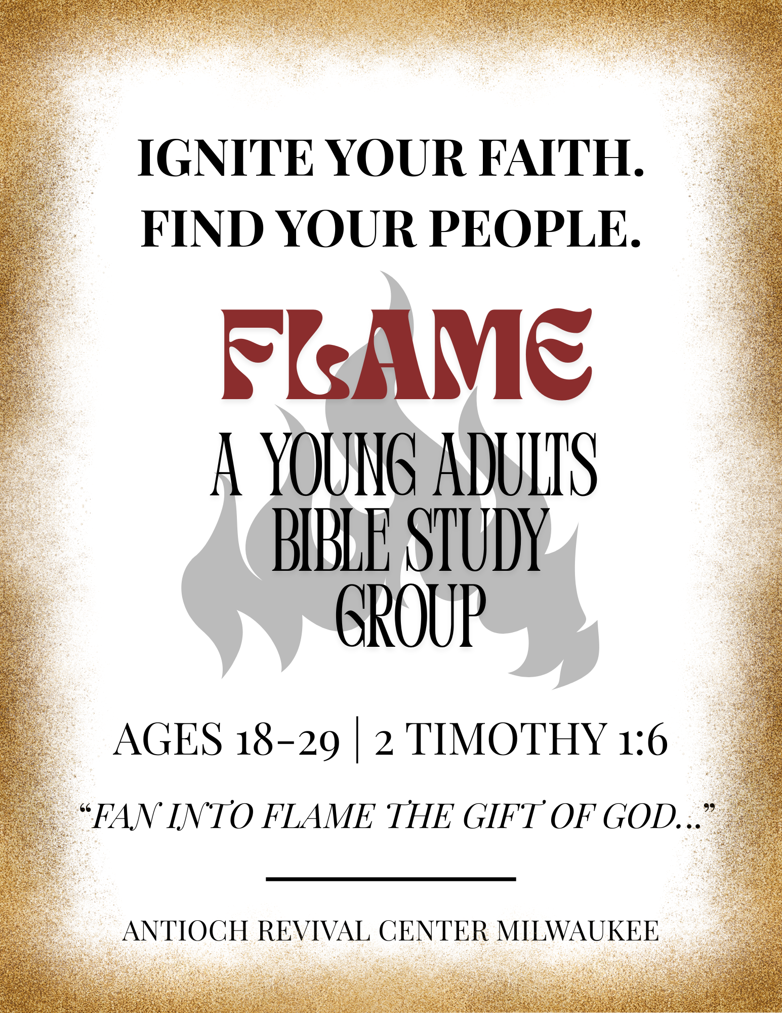 Join us every 1st and 3rd Saturday of every month at 10am. FLAME, bible study group made just for Young Adults. Real Talk. Real People. Real Faith. Let’s dive into the Word and build community together. Email Mari@arcmilwaukee.com for meet up info.